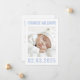 White or any colour thank you notecard with your photo and teh baby's name and date of bith on the front. On the back is customisable text "thank you" in a modern sans serif font and a custom message. You can change all colours, move and resize elements with the design tool.