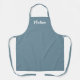 Cook in style with this Modern Dusty Blue White Script Monogram Name Apron. It is classy designed with a customisable trendy dusty blue background on all over print apron. Name is in trendy white hand writing script lettering on upper centre chest area.
