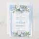 Modern Dusty Blue White Silver Roses Wedding Invitation