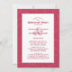 Magenta red modern wedding rehearsal dinner invitation design features an artistic botanical leaves pattern on a trendy magenta background. Bold calligraphy and script are in magenta on a white background and feature the couple's first and last names artfully positioned over a larger coordinating ampersand. A trendy template complements the unique design. The back of the card repeats the leaf pattern. For best results replace template details with your own information leaving space between paragraphs as in the example and use all capital letters where specified. E-mail invitationsuites@gmail.com with questions or use the message link for custom colour requests.