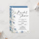 Modern blue and white wildflowers bridal shower invitation featuring a lovely arrangement on the side and base. The back of the invitation is a dusty blue color.