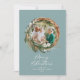 Modern dusty blue wreath Christmas script 1 photo Holiday Card
