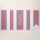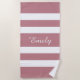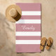 Personalized Modern Pink Dusty Rose Striped Name Beach Towel.