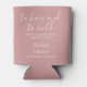An elegant dusty rose wedding favour can cooler featuring stylish signature script names and special message and date set in modern typography. Designed by Thisisnotme©