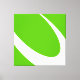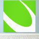 This dynamic, modern design features a white sweeping boomerang shaped curve against a bright lime green background.