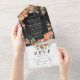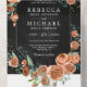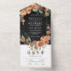 Modern Earthy Burnt Orange Floral Black Wedding All In One Invitation