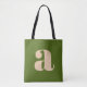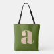 A stylish and contemporary tote bag featuring a rich olive green background with a bold beige lowercase letter in modern typography. Designed for everyday use, this versatile bag is perfect for shopping, work, or as a fashionable accessory. Its minimalist yet eye-catching design makes it an ideal gift for typography lovers and trendsetters who appreciate unique and artistic designs.