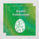 An abstract retro Easter illustration featuring a paper-art white Easter egg on a colorful green swirled background.