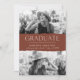 Celebrate your graduate's exciting milestone with these modern graduation announcements! The two photo graduation announcement features "Graduate" at the centre of the design in white modern lettering and brown background with torn edges. Personalise the announcement by adding the graduate's name, school name, and graduation year. The card reverses to display a textured brown and white striped pattern.