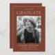 Invite guests to celebrate your graduate's exciting milestone with these modern photo graduation party invites! The design features the graduation year at the top with "Graduate" shown below in white modern lettering. The graduate's photo is displayed inside of a brown frame with torn edges. Personalize the design by adding the graduate's name, school name, and future plans (college, military, career choice, etc.). The invite reverses to display your graduation party details.