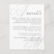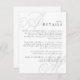 Provide your wedding guests with all the important details using this enclosure card. It features an elegant simple design with beautiful calligraphy script monograms of the bride and groom on alternate corners. A neat text layout displays the details you wish to provide your guests in a clean classic look with pale grey initials and black text over a white background. Replace the sample text with your information. You may move your initials slightly left or right, up or down to accommodate their best display in this design format. The monograms look best when they run slightly off the edges. Change any wording on the invitation to accommodate your info. To make additional changes in the personalised template, select "edit using Design Tool" at the bottom of the template which will open the Design Tool for full editing.