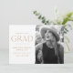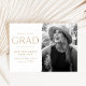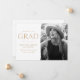 Celebrate your graduate's exciting milestone with these unique photo graduation announcements! The design features "congrats to our grad" in gold modern lettering with a white background with a torn edge bordering the graduate's senior photo. Personalise the announcement by adding the graduate's name, school name, and graduation year. The card reverses to display a solid white background with space for additional photos and text.