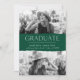 Celebrate your graduate's exciting milestone with these modern graduation announcements! The two photo graduation announcement features "Graduate" at the centre of the design in white modern lettering and green background with torn edges. Personalise the announcement by adding the graduate's name, school name, and graduation year. The card reverses to display a textured green and white striped pattern.