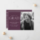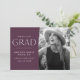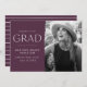 Celebrate your graduate's exciting milestone with these unique photo graduation announcements! The design features "congrats to our grad" in white modern lettering with a purple background with a torn edge bordering the graduate's senior photo. Personalise the announcement by adding the graduate's name, school name, and graduation year. The card reverses to display a textured purple and white striped pattern.