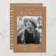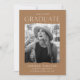Celebrate your graduate's exciting milestone with these modern photo graduation announcements! The design features the graduation year at the top with "Graduate" shown below in white modern lettering. The graduate's photo is displayed inside of a toffee-colored frame with torn edges. Personalize the announcement by adding the graduate's name, school name, and future plans (college, military, career choice, etc.). The card reverses to display a textured toffee and white striped pattern.