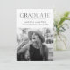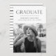 Celebrate your graduate's exciting milestone with these modern photo graduation announcements! The design features "Graduate" at the top in black modern lettering with a white torn edge bordering the graduate's senior photo. Personalize the announcement by adding the graduate's name, school name, and graduation year. The card reverses to display a textured white and black striped pattern.