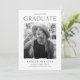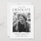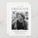 Invite guests to celebrate your graduate's exciting milestone with these modern photo graduation party invites! The design features the graduation year at the top with "Graduate" shown below in black modern lettering. The graduate's photo is displayed inside of a white frame with torn edges. Personalize the design by adding the graduate's name, school name, and future plans (college, military, career choice, etc.). The invite reverses to display your graduation party details.