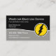 Modern Electrician service business cards in a unique design with electrician theme emblem and simple layout you can customise online. Designed for a licensed Electrician, electrical contractor, or a professional that does residential or commercial work. Printed on high quality matte finish UV coated business card stock.