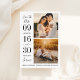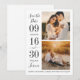 Modern and stylish wedding save the date announcement cards feature two square engagement photos with a typographic design that includes bold and elegant wedding date numbers with a simple monogram of the bride and groom names. Accented with Forever in script text. Classic black and white color scheme.