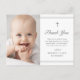 The classic stripe baptism thank you card is a modern, clean postcard featuring soft grey stripes and a cross with photo on the front. The back is a mailable postcard. Grey customisable type allows you to change all of the information on the card to your liking. Perfect for a little boys or girls baptism.