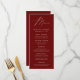 Simple and elegant wedding menu featuring "Menu" displayed in a modern white script with a burgundy background or colour of your choice. Personalise the burgundy wedding menu by adding your names, wedding date, and menu information. Designed to coordinate with our Modern Elegance wedding collection.