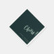 Celebrate in style with these Dark Green Hand Lettered Cheers Wedding Napkins! Featuring a modern design with a charming hand-written "Cheers" on a rich forest green background, these napkins add a touch of elegance to your wedding reception. Made with high-quality, absorbent paper for a comfortable guest experience. Personalise them with your names and wedding date for a lasting touch!
