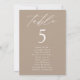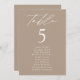 Elegant wedding seating chart featuring "table" displayed in white calligraphy script with the table number and guest names shown below on a taupe background. The design repeats on the back. To order the table number seating chart, edit each card with the table number and guest names and add it to your cart. Designed to coordinate with our Modern Elegance wedding collection.