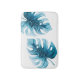 Tropical bath mat design featuring originally hand-painted watercolor monstera leaves.