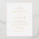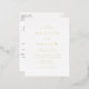 Minimalist, modern wedding invitation postcard featuring your wedding details in gold foil lettering with calligraphy script accents. The white background can be changed to a colour of your choice. The back of the foil wedding invitation postcard displays your return address and RSVP details. Designed to coordinate with our Modern Elegance wedding collection.