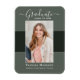 Beautiful 1 photo graduation announcement magnet. Featuring modern text with elegant calligraphy script in white on shades of sage green. To see more items like this, visit my store here at "www.Zazzle.com/LakeViewCardCo". Thanks