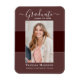 Beautiful 1 photo graduation announcement magnet. Featuring modern text with elegant calligraphy script in white on shades of dusty rose and burgundy. To see more items like this, visit my store here at "www.Zazzle.com/LakeViewCardCo". Thanks