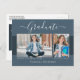 Beautiful 2 photo graduation announcement postcards. Featuring modern text with elegant calligraphy script in light grey on regal shades of dusty blue. To see more items like this, visit my store here at "www.Zazzle.com/LakeViewCardCo". Thanks