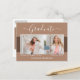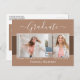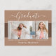 Beautiful 2 photo graduation announcement postcards. Featuring modern text with elegant calligraphy script on shades of mocha earth tone and light terracotta. To see more items like this, visit my store here at "www.Zazzle.com/LakeViewCardCo". Thanks