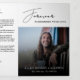 Sophisticated, modern trifold funeral program template with a striking black background and elegant white script typography, designed to create a timeless and dignified memorial keepsake. This layout includes space for an obituary, thank you message, order of service, memorial poem, and seven photo placements, allowing families to beautifully showcase cherished images alongside meaningful tributes. The high contrast black and white design conveys a sense of grace and reverence, making it a heartfelt choice for honoring a loved one’s memory and providing guests with a lasting remembrance of a life well lived.
