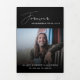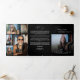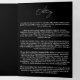 Sophisticated, modern trifold funeral program template with a striking black background and elegant white script typography, designed to create a timeless and dignified memorial keepsake. This layout includes space for an obituary, thank you message, order of service, memorial poem, and seven photo placements, allowing families to beautifully showcase cherished images alongside meaningful tributes. The high contrast black and white design conveys a sense of grace and reverence, making it a heartfelt choice for honoring a loved one’s memory and providing guests with a lasting remembrance of a life well lived.