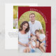This photo Christmas card features a modern minimalist design showcasing an arched photo on the front and another vertical photo on the back. The design offers white text that gracefully curves along the edge of the picture is accented with elegant handwritten script on a traditional dark red background. Add your personal message on the back side.