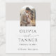 Add a personal touch to your wedding reception or celebration with this modern simple arch photo wine label. Simply replace the sample photo in the design template with your selected photo. A neutral beige band of colour along the upper edge of the design adds a pop of style and neutral colour to this elegant design. The text template includes the bride and groom's names in an elegant serif font along with the wedding date and the wine varietal name. A lovely way to celebrate the happy couple!