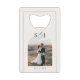 Celebrate your big day with this modern wedding favour bottle opener, featuring a stylish arch-shaped photo template and an elegant script monogram on the front. The back showcases a full photo layout—perfect for a favourite engagement or wedding portrait. A practical keepsake your guests will actually use, and a beautiful way to say thank you.