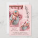 Modern, elegant Baby Girl Photo Collage Birth Announcement Card. Design features 2 photos of the baby on the front, typography script ''introducing'' in trendy handwritten lettering, baby's name and birth stats. Personalise further with 4 additional photos on the back.