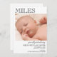 Introducing our modern and elegant baby birth announcement, the perfect way to introduce your little one to the world. This beautifully designed card features a photo of your newborn along with a mix of modern calligraphy and traditional fonts, creating a timeless and sophisticated look. Celebrate this joyous occasion with style and grace with our personalised birth announcement.