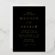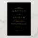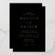 Minimalist, modern wedding invitation featuring your names and wedding details in gold foil lettering with calligraphy script accents. The black background can be changed to a colour of your choice. Designed to coordinate with our Modern Elegance wedding collection.