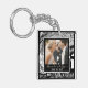 Your engagement or other fun photo, against an elegant modern black and white linear design, on a useful keepsake. Everyone has keys right?! Abstract black and white line tangle is an original digital piece of art. Every line has a curve and creates a curve. Champagne and black coloured typography accent the new couple.