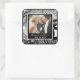 Your event photo, against an elegant modern black and white linear design, on delightful little stickers. Perfect to seal envelops with an engagement photo on your invitations. Also a perfect add on for wedding favours and thank you notes. Abstract black and white line tangle is an original digital piece of art. Every line has a curve and creates a curve. Champagne coloured typography.