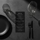 Add a refined touch to your tablespace with this Modern Elegant Black and White Wedding Dinner Menu, designed with clean contemporary typography and a grounded, natural colour palette. The black and white tones tie effortlessly with minimalist details, making it a perfect fit for elegant weddings. Simple and modern, this menu outlines your carefully curated meal while enhancing the overall aesthetic of your reception décor.