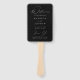 Elegant wedding program hand fan featuring a modern white calligraphy script with a black background to create a design that is perfect for weddings of all styles and seasons. Personalise the front of the modern wedding program with your names, wedding date and location, and custom thank you message. The wedding program fan reverses to display the order of service and a list of your wedding party. The black and white wedding program hand fan was created to coordinate with our Modern Elegance wedding collection.
