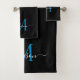 Modern Elegant Black Blue Monogram Script Name Bath Towel Set
