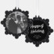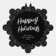 These wonderful paper ornament cards feature an elegant faux black glitter background. On the front of the card is a simple round photo shape. On the back is an EDITABLE script greeting in white with your text in a classic serif font. These ornaments make a fabulous holiday card that will then become a keepsake that can be displayed on the Christmas tree. They are also wonderful as gift tags!