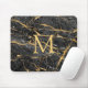 Modern Elegant Black Gold Marble Monogram Mouse Mat