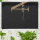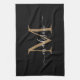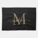 Modern Elegant Black Gold Monogram Script Name Kitchen Towel