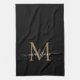 Modern Stylish Elegant Black Gold Monogram Script Name Kitchen Towel